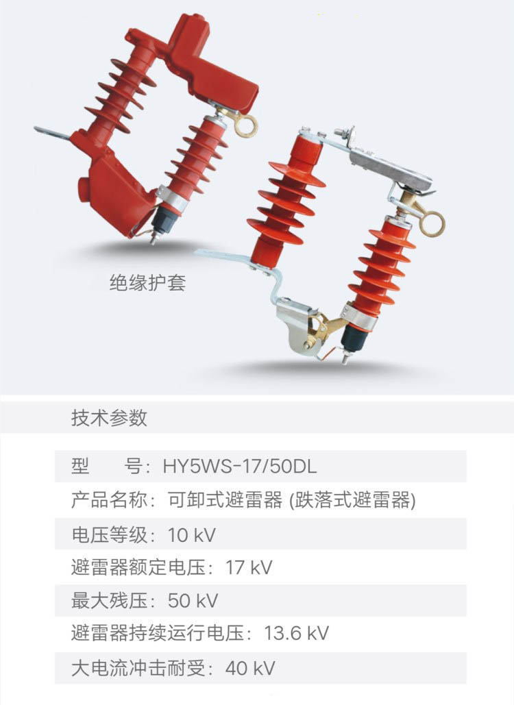 HY5WS-17/50DL-TB可卸式避雷器10kv户外高压跌落式避雷器配件护套